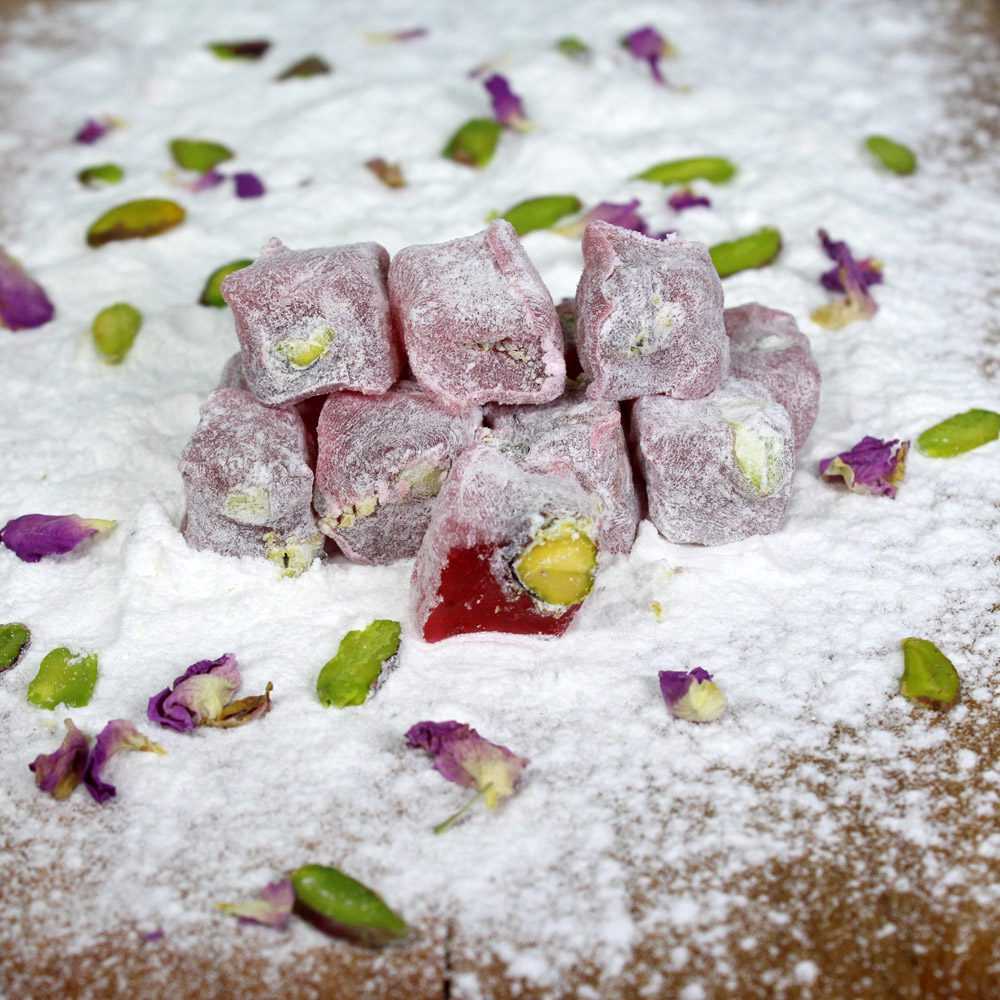 Güllü Antep Fıstıklı Lokum (1kg) %100 Pancar Şekeri